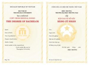 Trường Đại học Thương mại (TMU) là một trong những trường đại học công lập hàng đầu tại Việt Nam trong lĩnh vực đào tạo kinh tế, thương mại và quản trị kinh doanh. Với bề dày lịch sử và uy tín, bằng tốt nghiệp từ TMU được đánh giá cao trên thị trường lao động. Trường đào tạo đa dạng các chuyên ngành như Quản trị kinh doanh, Kế toán, Tài chính – Ngân hàng, Thương mại điện tử, Marketing, và Quản trị dịch vụ du lịch & lữ hành. Chính vì sự danh giá này,  mua bằng đại học thương mại  trở thành lựa chọn của không ít cá nhân muốn nâng cao giá trị hồ sơ.